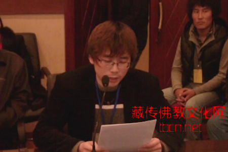 原《甘南报》藏文版主编、藏学家纪天材先生作了题为《香巴噶举的智慧窗棂》一文,由凉州文学院院长陈亦新代读。