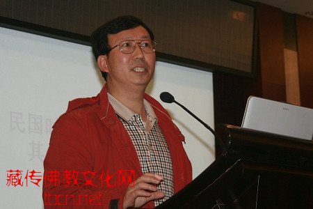 四川民族学院藏学系主任麦波的发言主题为:《藏传佛教利他思想与构建和谐社会》