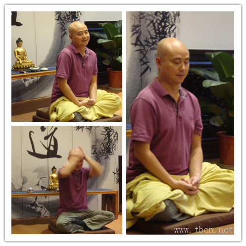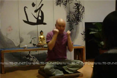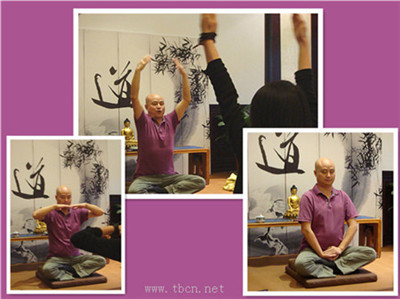 看老师的标准示范动作:吸气——下压——持气如宝瓶! 老师讲道:修持宝瓶气,一定要配合见地,要在心性上下工夫,没有心的功夫与外道无异,非但解脱无由,也徒增烦恼。