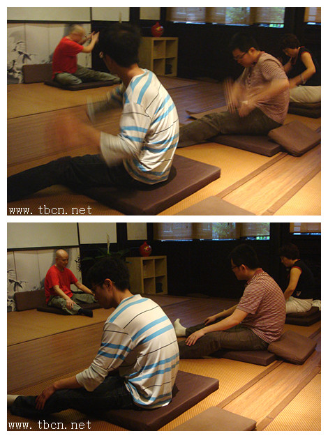 拍打身体有利于全身各个经络的打开,这些动作能帮助大家更快更容易地修行。当张老师一声断喝,动作嘎然而止时,观察自己的妄念有没有也随之停止?!