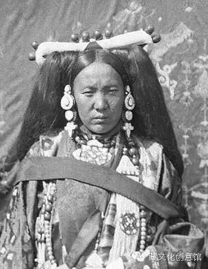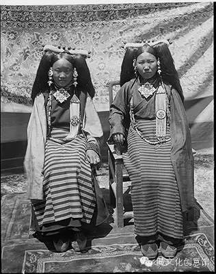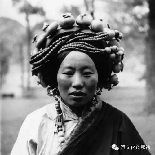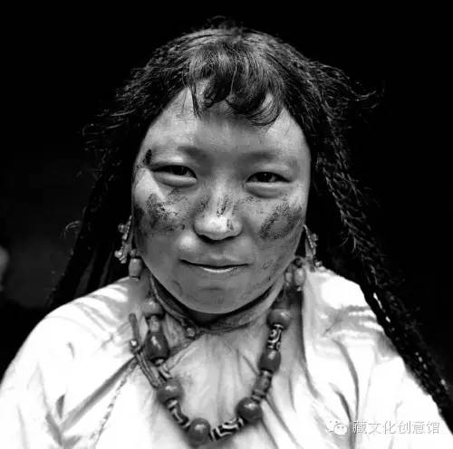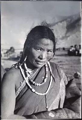 1937年摄于青海玉树,玉树藏族青年妇女有用酥油和黑灰涂面之俗。相传古时藏王因妇女容颜秀丽,为防喇嘛不能遵守清规,于是下令妇女涂面以护佛法。涂面之另一意义谓:高原朔风多历,涂之以滋润肌肤云。