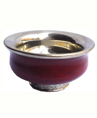 藏家客厅的藏式茶几上总是摆放着木碗,同样的木碗,因家境的不同,又大有讲究。一般人家每个家庭成员各有木碗,而家境好的人家的木碗,还有银盖,银盖上镌刻着吉祥图案。更有甚者,有的木碗通体镶银雕花,碗腰处只留有指宽的部分,只让你明白碗胎是木质的。其上为碗盖,下为碗托,均为银质。盖成塔形,雕银嵌金,顶端一颗红玛瑙为手柄。碗托尤其别致,是盛开的八瓣莲花状,每瓣上有一幅吉祥图案,八瓣合成传统的八祥瑞图案。碗和盖置其上,美轮美奂。