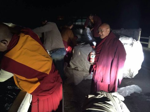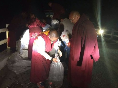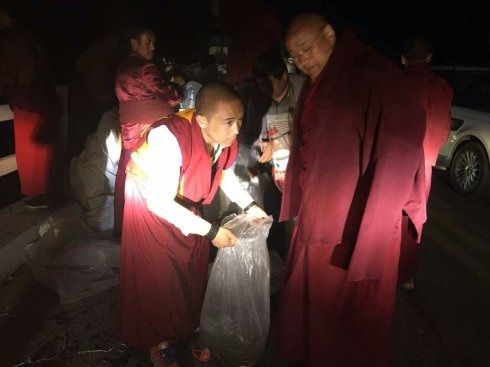 第七世佐钦法王法会上早晚要接待众多的汉藏信众。7月28日白天在佐钦寺分寺沙陀寺进行灌顶、晚上开会讨论寺庙管理。当天深夜,已是沉寂一片,却还在青海湖主持放生以救度众生!(特别提示青海湖是不能随便放生其它的鱼类或物种,而是根据在当地了解后放生的一种小鱼,可以在青海湖生存,且不会影响生态环保)