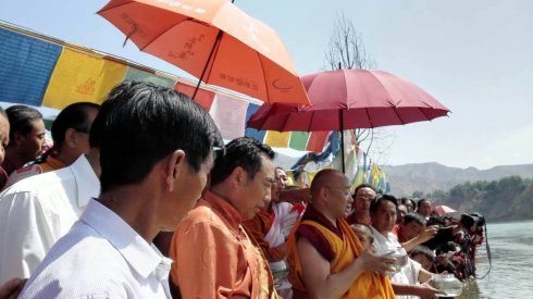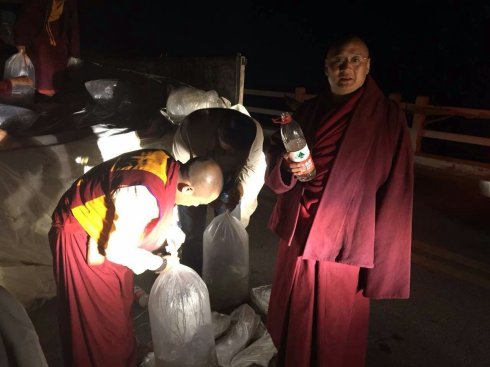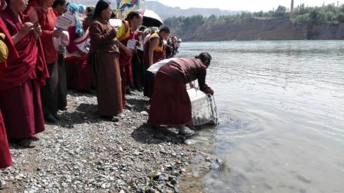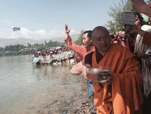 7月29日又苙临佐钦分寺格绒寺(位于著名的夏琼寺附近)为瑜伽士们开示并举行黄河大放生!尊贵的第七世佐钦法王在放生现场还作了如下之开示: