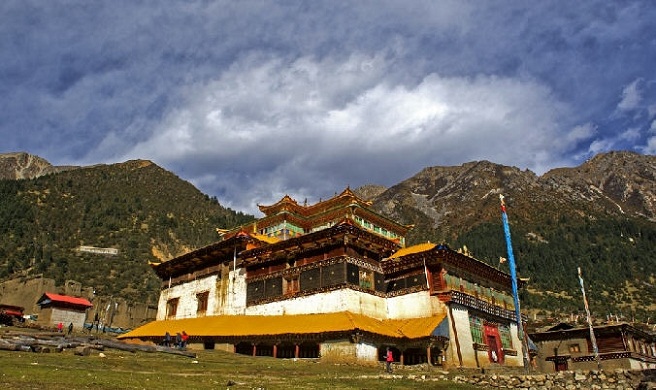 该寺于公元1288年由喇嘛洛登创建于雄龙西之饶玛果。1860年3月在中瞻对土司的支持下,由白马邓登活佛按西藏桑耶寺图式对寺庙进行重建,占地480亩,内外筑墙两道,主殿高3层,****层有释迦牟尼及四大天王壁画,塑有宁玛祖师、萨迪五祖、噶举祖师、格鲁祖师的像;第二层有1022个千姿百态的护法佛像;第三层为彩虹房。顶部为金顶屋脊宝瓶,十分壮观。白马邓登还亲自在庙门上书写“哈甲娃嘎绒更巴”(意为东方著名的嘎绒寺)。寺内保存有西藏地方政府派人从昌都铸造的金刚莲花生佛像。