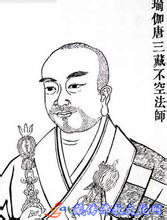 不空(公元705~ 774年),又作不空金刚,狮子国(今斯里兰卡)人。唐代译经家、密教付法第六祖。不空幼年从叔父游南海诸国,其后出家,十四岁从金刚智三藏学习悉昙章,诵持梵经。不久渡过南海,于玄宗开元八年抵洛阳,时年十六。(也有一种说法,说不空是北天竺婆罗门之子,随叔父至武威、太原,后师事金刚智。)二十岁时于洛阳广福寺受具足戒,因为聪敏过人,深获金刚智三藏之器重,尽得五部三密之法。