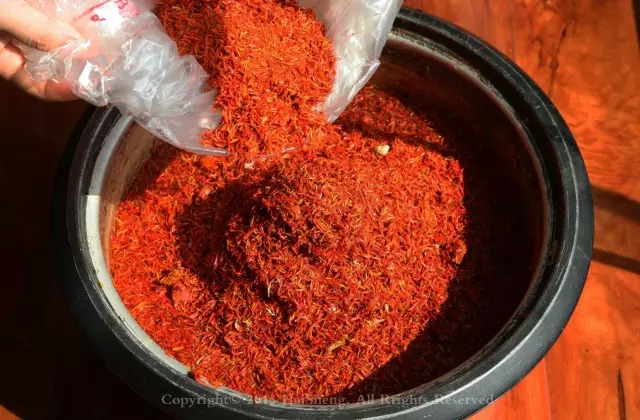 传统唐卡颜料的配制方法都是一代代相传下来的,一般工序分为采集、精选、清洗、浸泡、熬煮、研磨、蒸发、制丸等。上世纪90年代以前,所有工序几乎都由人工完成。随着科技的进步,设备有了一些改进,有些工序已经由半自动机器代劳。但是,细磨、研磨、分层、分离等工序仍然需要经验丰富的技师手工完成。