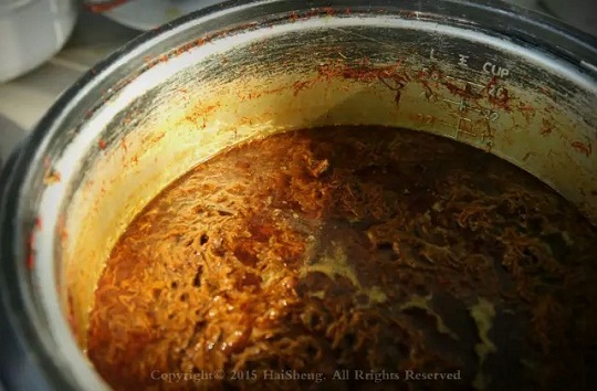 熬到沸腾后再过10-20分钟,冷却以后,倒进容器储存