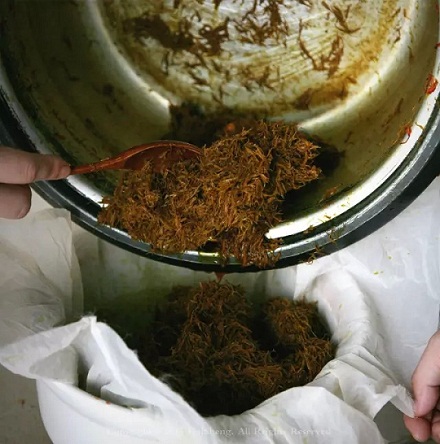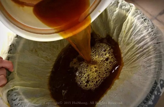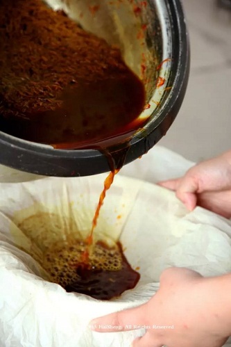▼换一锅,残羹也一齐倒进去进行过滤,以免浪费