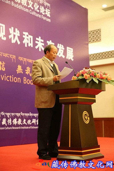 四川省藏传佛教文化研究会副会长兼秘书长张炜明回顾了该研究会过去所取得成绩和未完成的工作,希望通过论坛会上的交流和会后深入的调查研究,摸清藏传佛教的真实现状,接近和发现藏传佛教自身的问题,探索其他管理方面的问题,寻求共识、答案与可行途径;探索如何描绘藏传佛教与社会和谐共生、双赢发展的未来蓝图。他还指出,本论坛是展示藏传佛教文化、扩散正能量的一个难得的平台。