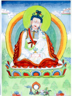 狮子山腹凸处右侧,也就是生日寺是金刚萨埵的坛城,山腹凸处左侧是宝生如来的坛城,山脐间平宽的地方是不动如来的坛城,山背如法螺的旋鬘之中是成就自在的八十一主尊。