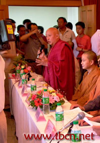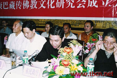 3:50,会议开始之前,首先由众活佛领诵,众居士跟随,用藏汉两种语言,一同唱诵一篇短小、喜庆的吉祥发愿文,即愿国泰民安、世界和平、民族团结。以彰显本会之宗旨,并使会议庄严、肃穆。