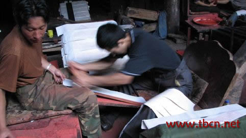 工人们正在飞快的印经
