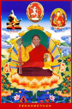 空行仁波切的今生乃近代康区著名的女性上师、至尊空行母玛吉拉尊佛母的真实化身-----****师敦珠法王的女儿拉金·班玛色空行母的转世。一世敦珠法王察同·敦珠林巴仁波切在其甚深伏藏中明确授记空行仁波切是胜者莲花生大师的语密和依稀措嘉佛母的意密之共同化身;大持明华智·南卡晋美亦授记空行仁波切的降生说:“拉金空行母将再次转世到我们家中,能够成办广大的利生事业!”;参智仁波切在《佛法调伏金刚续》中也授记道: