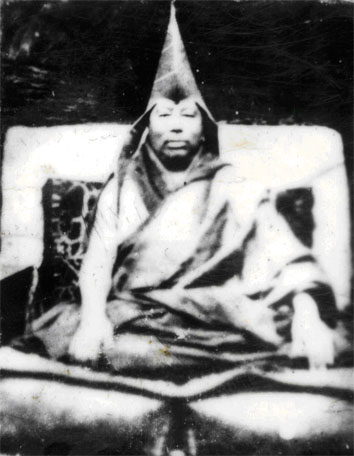 那天,约敦抱着年满四岁的多吉秋雄来求加持,尊者将他认定为喇嘛龙多的转世灵童,并让他坐在自己坐过、还尚有余温的宝座上作了坐床仪式。尊者和堪布多里等向他顶礼并禅位于他。