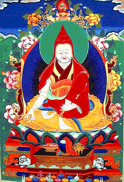 先如此之赞颂供养后,一般来说登地的诸菩萨,本来无生死之相,现量成就无边金刚身,但是为了度化众生而示现应化身的功德。《宝性论》中说:“具有清净见定故,远离生死等诸相,然由生起慈悲心,示现生老病死相。”如此,除事业的变化相之外,无有别的事实。尤其是遍知者阿格旺波上师,实质上与金刚总持无二无别,是在法界早已觉悟后再显的不可思议幻化相的应化身。共有二十五代:释迦佛授记的三尊者(维摩诘、持佛名比丘、龙树)、印度的三圣者(法称、月称、洛珠登巴)、三瑜伽禅师(曼珠密扎、吽嘎拉、比马拉米札)、西藏的三译师(达那嘎达、定增桑波、囊喀宁波)、三****王(囊巴南王、赤松德赞、登巴国王)、西藏的三位班智达(隆钦饶降巴、索囊圣格、益喜笨巴)、三大伏藏师(宁玛俄色、白玛愣遮杂、噶玛林巴)、三头陀瑜伽行者(仁钦罗珠、圣格王修、噶玛恰美)等等。其中与大班智达比马拉米札和无垢光尊者无二无别的遍知者阿格旺波,号称阿旺巴桑·俄萨仁钦宁波·白玛楞遮杂,他美名天下之功德全在《自传幻化戏论》中记载。以下我要写的,是以他几位亲弟子的零星话而作的没有次序的记述。